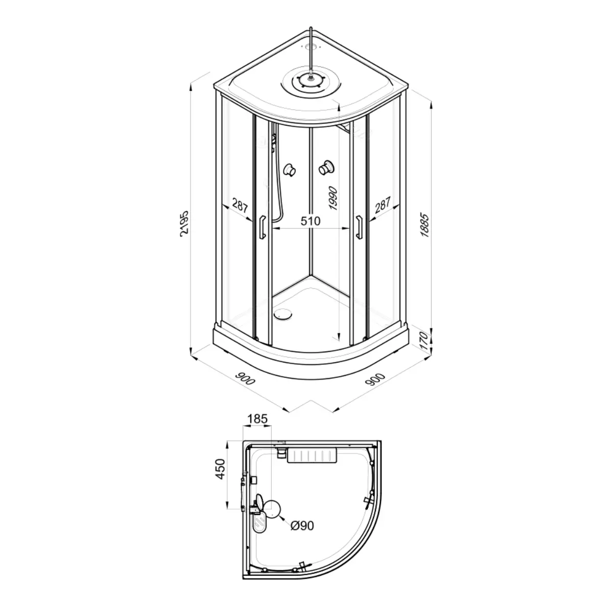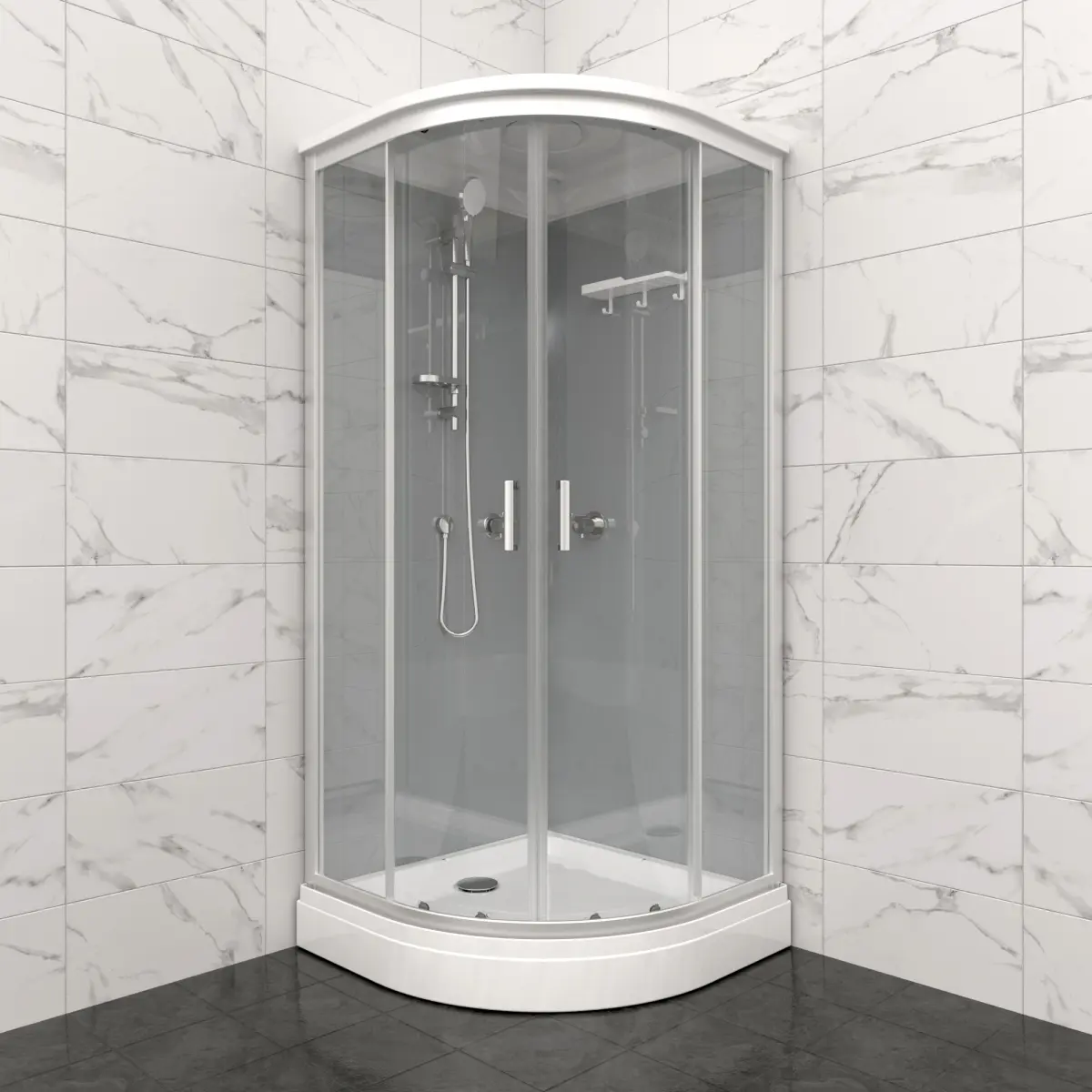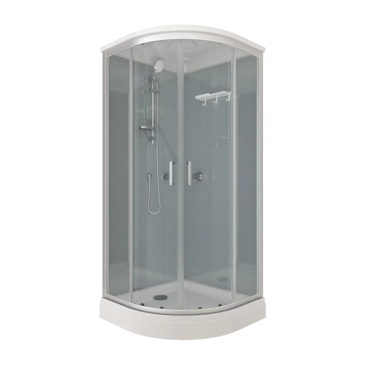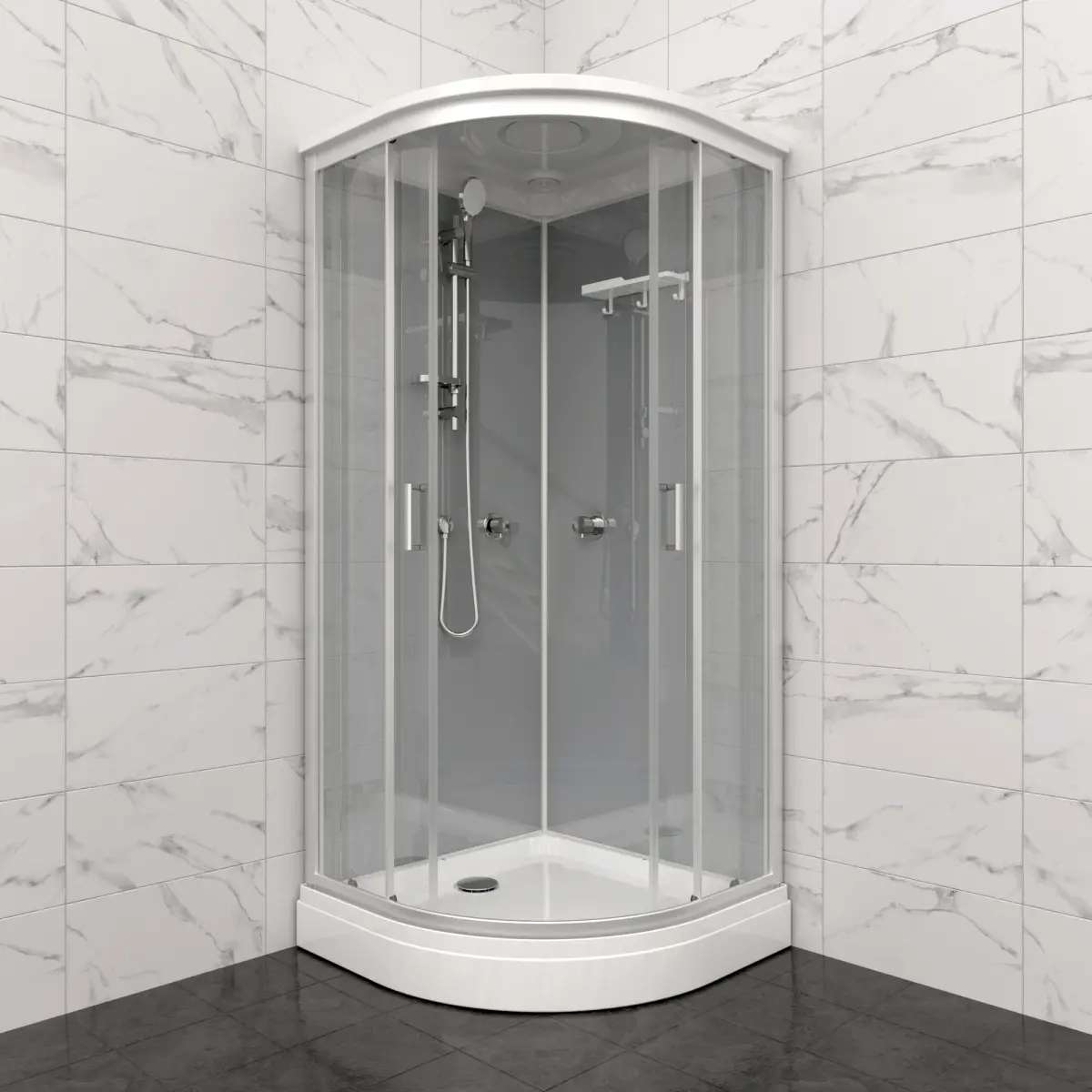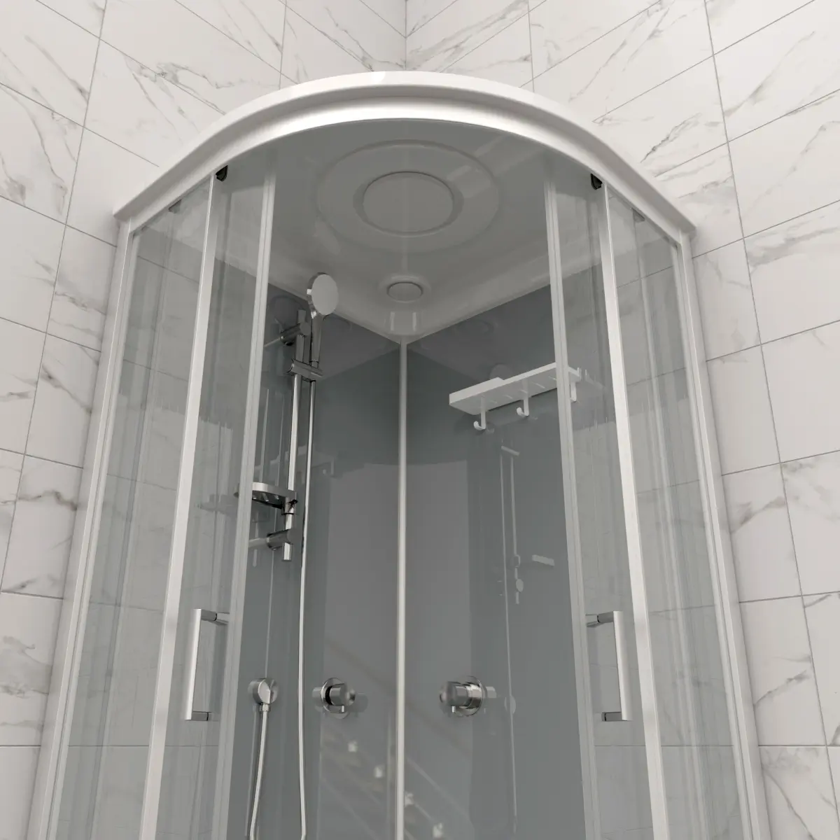 Душевая кабина с низким поддоном 17см. В комплекте лейка, душ, тропический душ, полка, сифон.