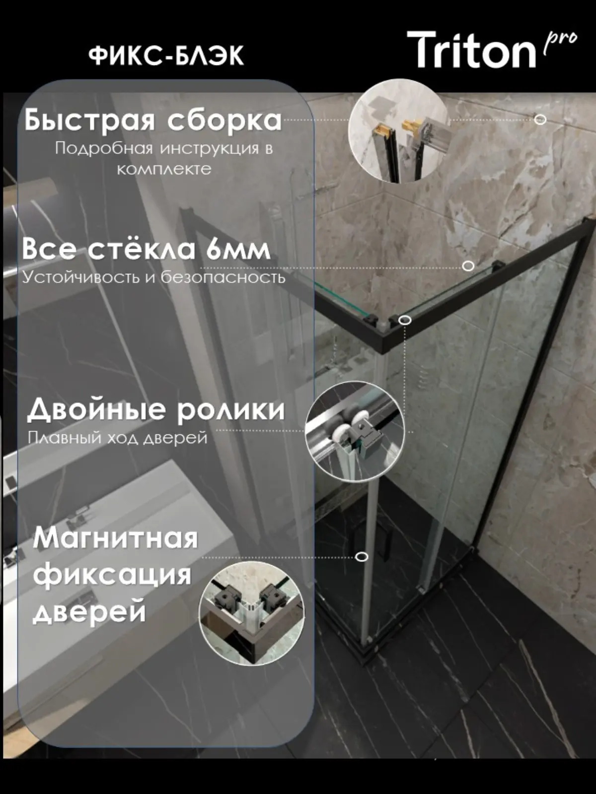 В целом, душевой уголок Triton Душевая Ширма Фикс-Блэк 100х100 - это стильное, функциональное и надежное решение для вашей ванной комнаты, которое обеспечит комфорт и безопасность использования.