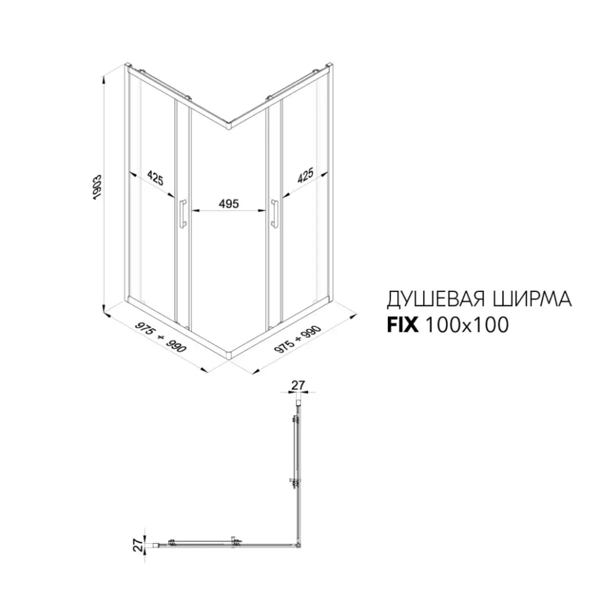 Душевая Ширма Фикс-Хром 100х100 — Стиль и надёжность для вашей ванной