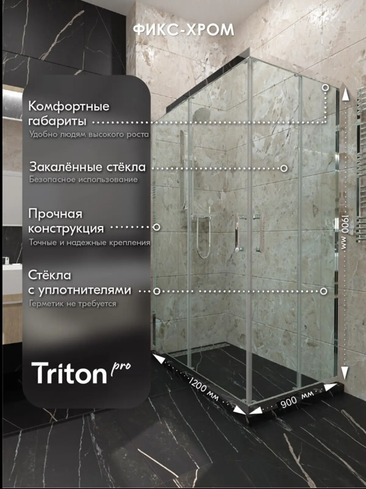 Не откладывайте создание идеальной ванной комнаты! Закажите душевую ширму Triton Фикс-Хром 120х90 прямо сейчас и получите: