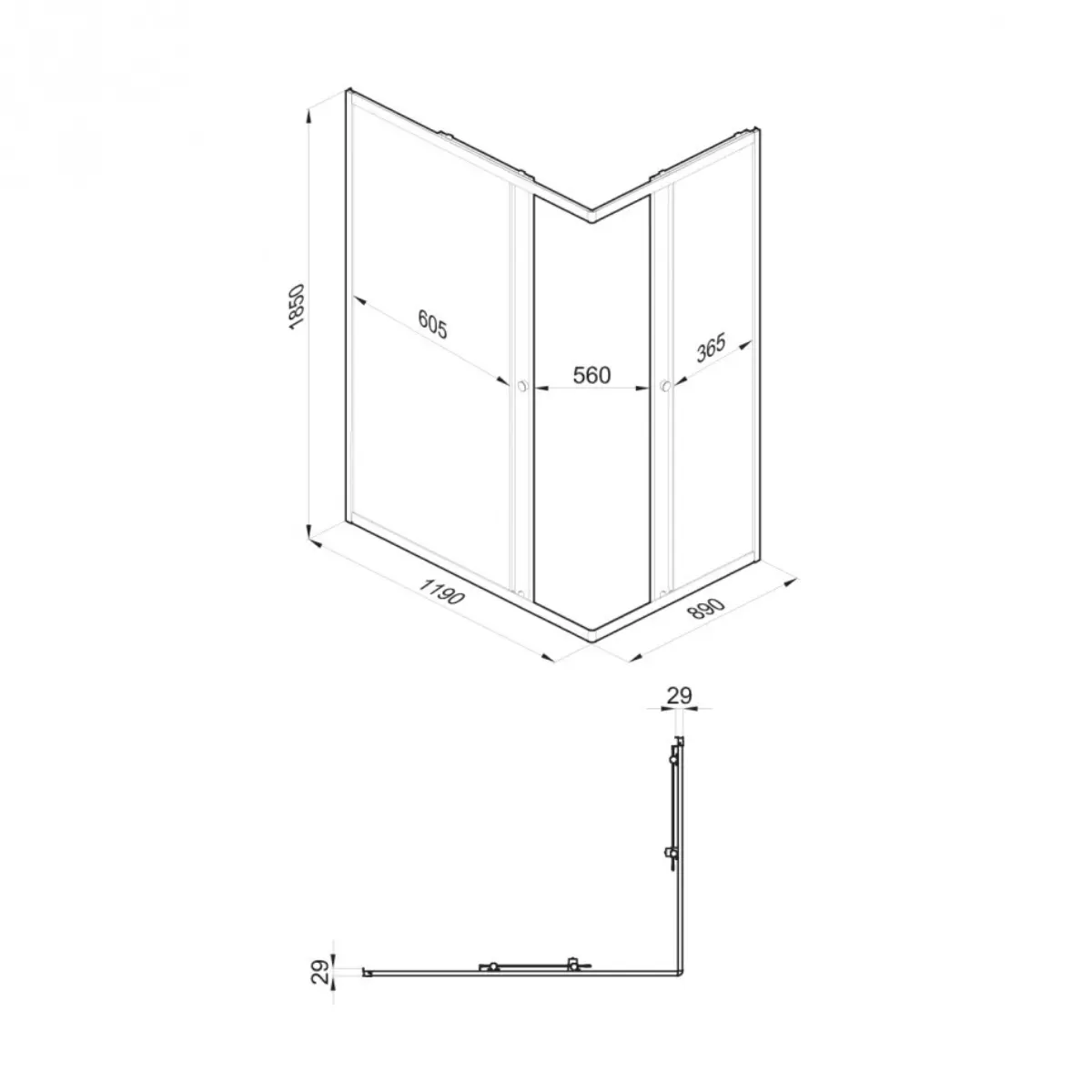 Закаленное стекло толщиной 4 мм выдерживает высокие нагрузки и безопасно при случайном разрушении. Алюминиевый хромированный профиль не ржавеет и легко моется. Раздвижная система на двух роликах скольжения работает плавно и бесшумно, а ширина проема 560 мм обеспечивает легкий доступ.