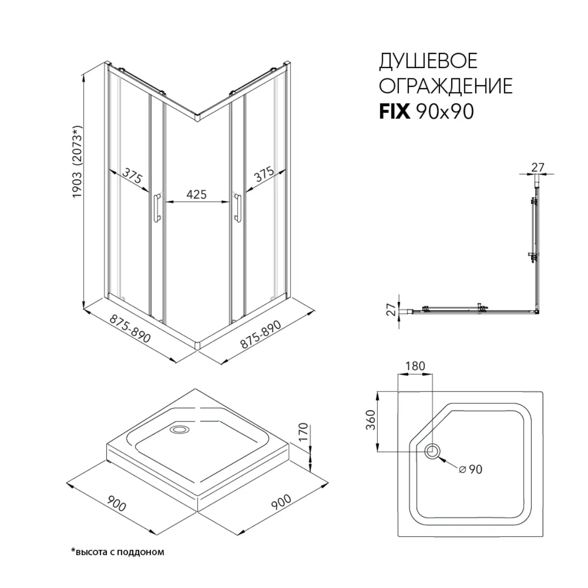 Отзывы о продукции «Душевое ограждение Фикс-Блэк 90*90»