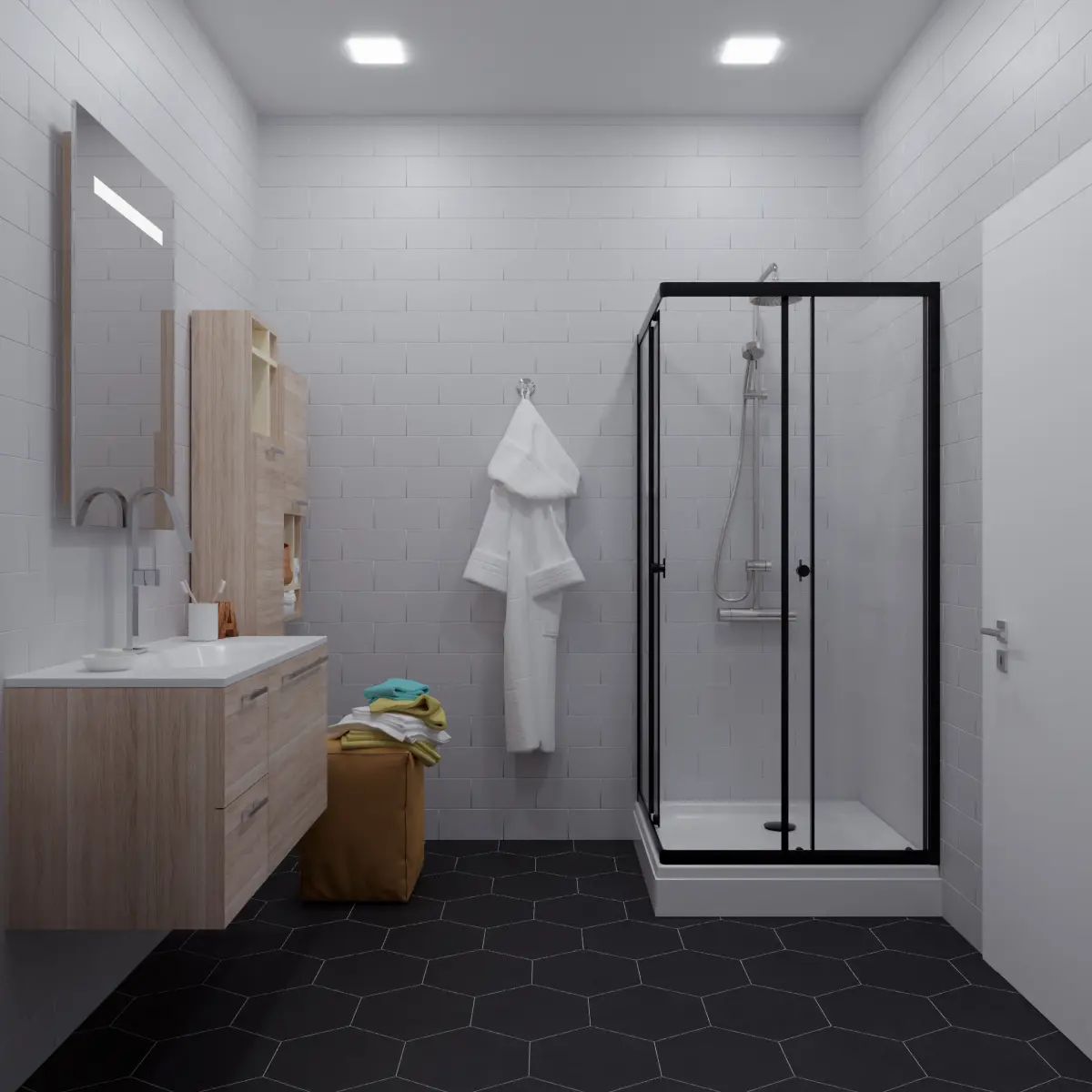 - Эксклюзивный чёрный профиль: Алюминиевая рама с покрытием цвета «Чёрный» выглядит благородно и строго. Это не просто сантехника, а полноценный элемент дизайна, который подчеркнёт индивидуальность вашего интерьера.