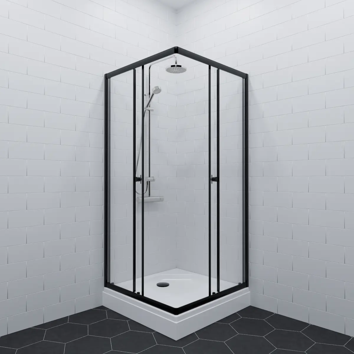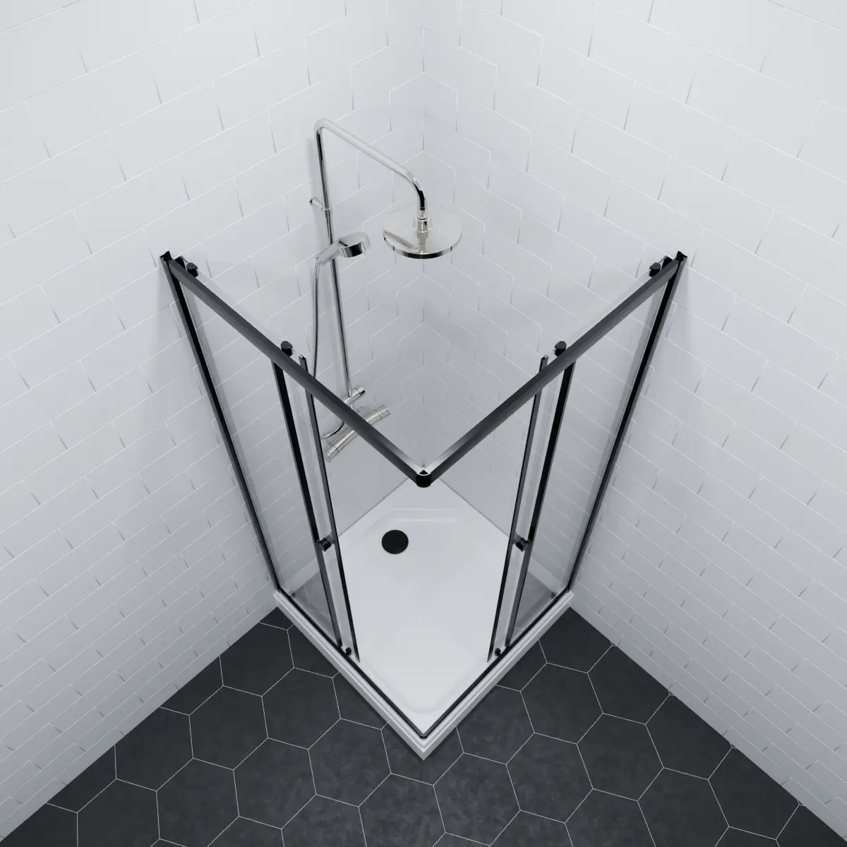 Эта модель с квадратной формой и профилем глубокого чёрного цвета создаёт эффектный контраст и добавляет интерьеру графичности и современного шика. Идеально подходит для просторных душевых зон, где хочется подчеркнуть геометрию и чистоту линий. Раздвижная система дверей экономит место, а продуманная конструкция обеспечивает герметичность и комфорт.
